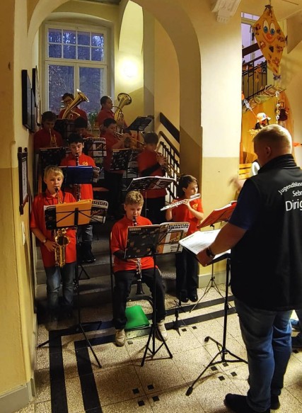 Aber alle waren nach dem Herbstprobenlager Ende Oktober im KIEZ Sebnitz bestens vorbereitet! Kleine Herausforderung war, dass diesmal nicht wie gewohnt Saskia Kühnert vor dem Orchester stand, sondern Sven Häntzschel, der musikalische Leiter des Jugendblasorchesters Sebnitz.